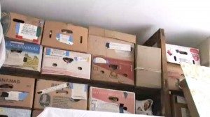 Qu’en fait-il ? Tout d’abord, il les collectionne, et les regroupe par catégories dans des cartons récupérés sur les marchés : objets noirs et blancs, objets violets, objets rouges, …, timbres, drapeaux, cartes géographiques, cartes postales, calendriers, allumettes, dés, crayons de couleurs, stylos, … Conséquence de cette pratique : sa maison-atelier, si grande soit-elle, est envahie par les cartons, et il doit vivre ailleurs. Les peintres et les sculpteurs ont des problèmes de place pour ranger leurs œuvres, Otis a d’abord des problèmes de place pour ranger les matériaux de ses œuvres, puis des problèmes de place pour ranger ses œuvres. Autre conséquence : il a dû renoncer à avoir des enfants et la femme qui va généralement avec, cette conception de l’art, très originale et à rebours des conceptions traditionnelles comme de beaucoup des conceptions modernes, implique une véritable ascèse, c’est-à-dire une privation des plaisirs et des joies ordinaires de la vie (Rudo Fila a écrit de lui qu’il était un ascète qui ne s’interdit rien, mais s’il ne s’interdisait rien, il serait le contraire d’un ascète …).